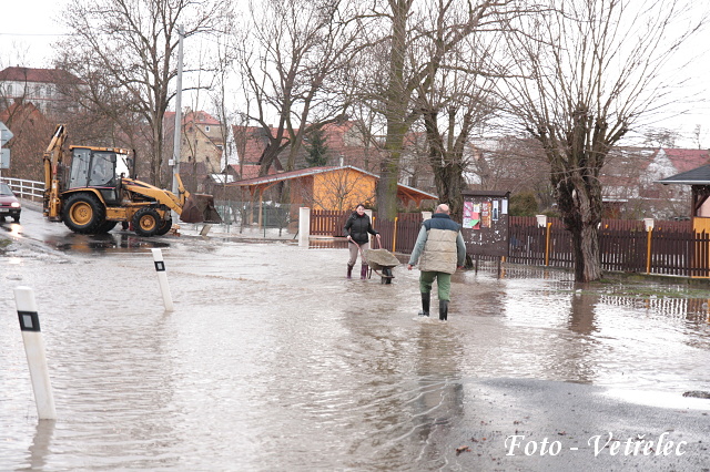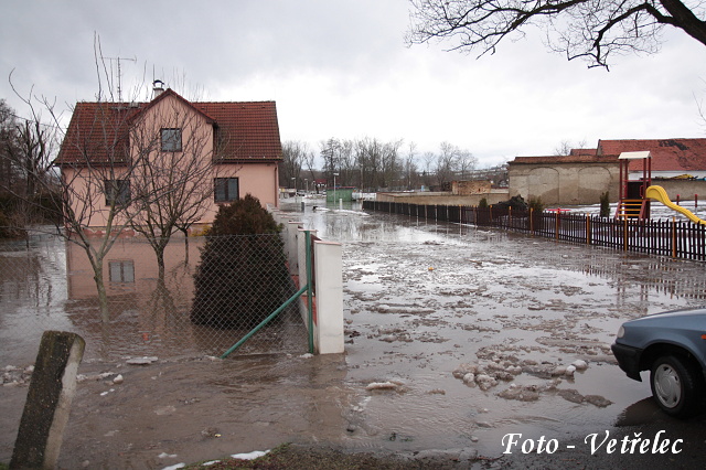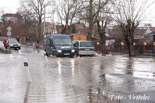 zaplavená křižovatka na návsi...